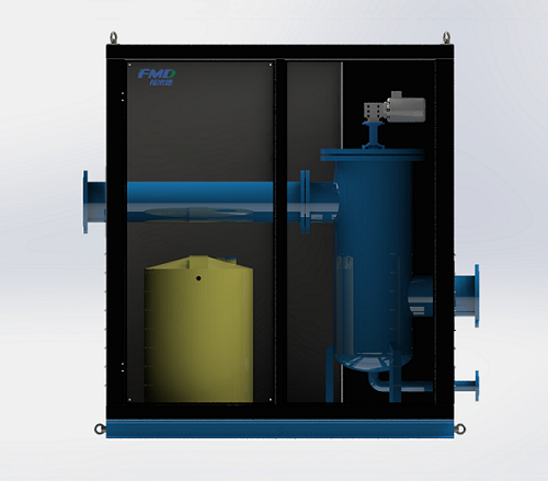 容水機(jī)組是一種適用于循環(huán)水系統(tǒng)處理的機(jī)組,包括對管道中的水進(jìn)行固液精確分離的DIS(Double isolation)系統(tǒng),促進(jìn)榮水劑充分榮合的PF(Promotethe fusion)系統(tǒng),以及控制DIS 系統(tǒng)、PF 系統(tǒng)運(yùn)行的IC控制系統(tǒng)。DIS 系統(tǒng)通過法蘭連接在系統(tǒng)主管道上、DIS 系統(tǒng)通過管道與PF 系統(tǒng)相連接,PF 系統(tǒng)通過管道與系統(tǒng)主管道相連接,DIS 系統(tǒng)、PF 系統(tǒng)通過數(shù)據(jù)線與IC(Integrated control)控制系統(tǒng)相連接。